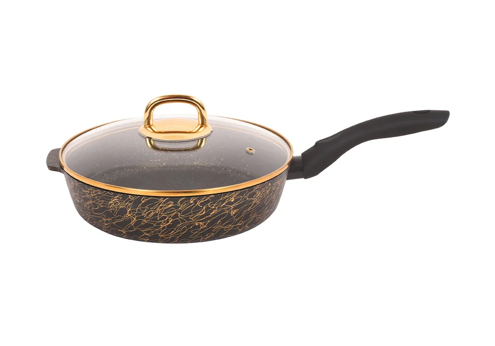 Сковорода 24 см с ручкой, со стеклянной крышкой АП линия Грация (черный/золото) сгчз241а