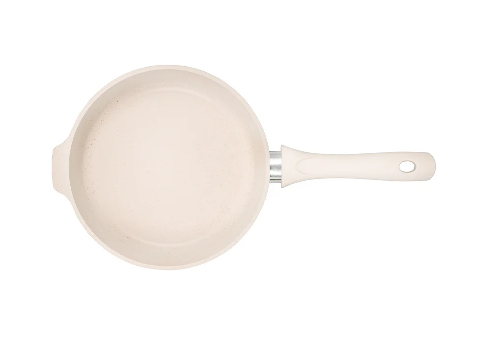 Сковорода Kukmara с антипригарным покрытием имеет проточенное дно, которое обеспечивает максимальное прилегание дна посуды к плите для более быстрого и равномерного нагрева.