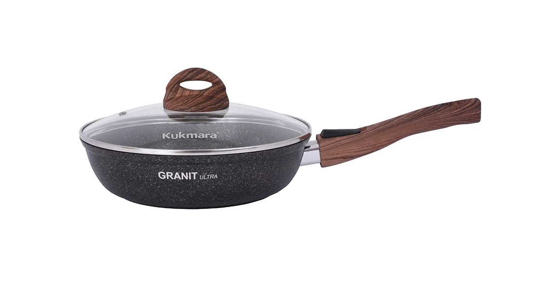 Сковорода Kukmara с антипригарным покрытием имеет ровное проточенное дно, которое обеспечивает максимальное прилегание дна посуды к плите для более быстрого и равномерного нагрева.