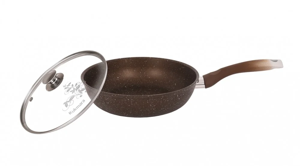 Сковороды, сотейники, жаровни, казаны » Кукмара Сковорода 24/6 см с антипригарным покрытием (кофейный мрамор) с ручкой и стеклянной крышкой смк24603а