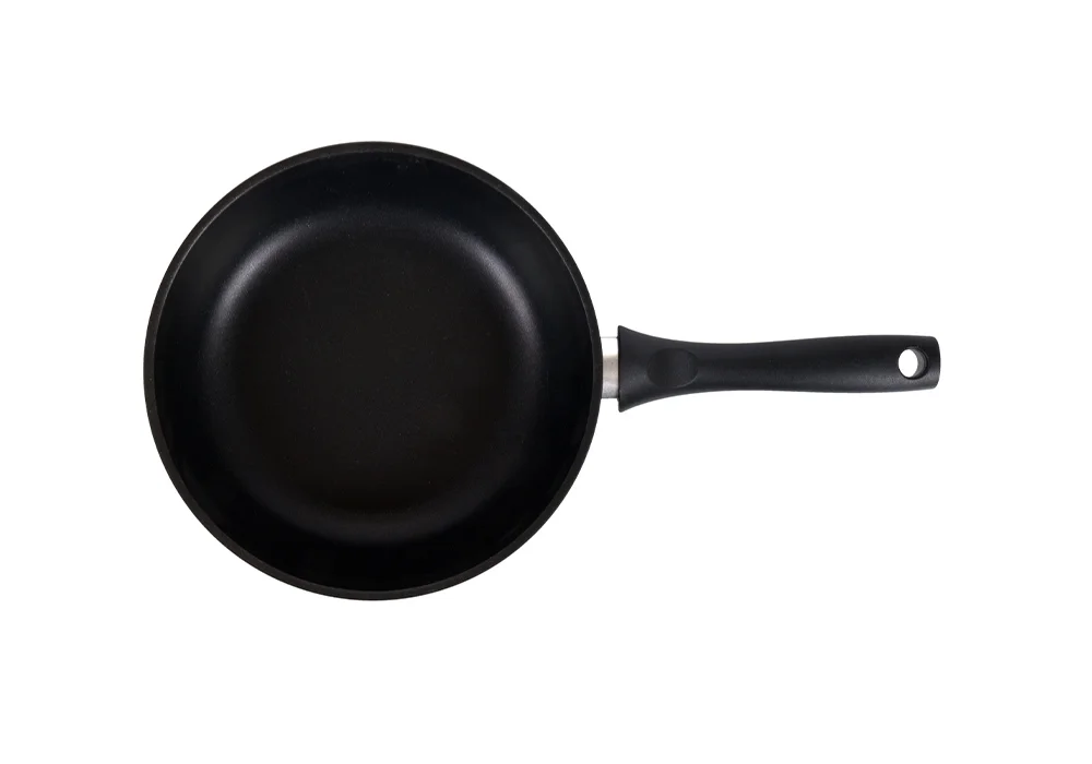 Сковорода Kukmara с антипригарным покрытием имеет проточенное дно, которое обеспечивает максимальное прилегание дна посуды к плите для более быстрого и равномерного нагрева.