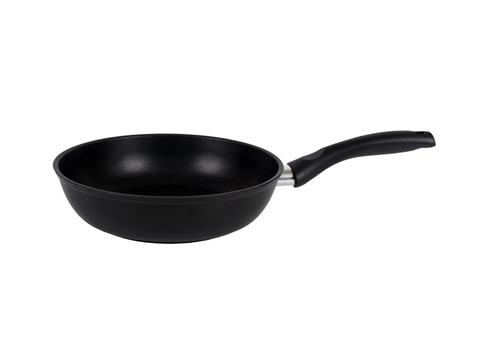 - значительная толщина стенок и дна исключает деформацию корпуса сковороды;