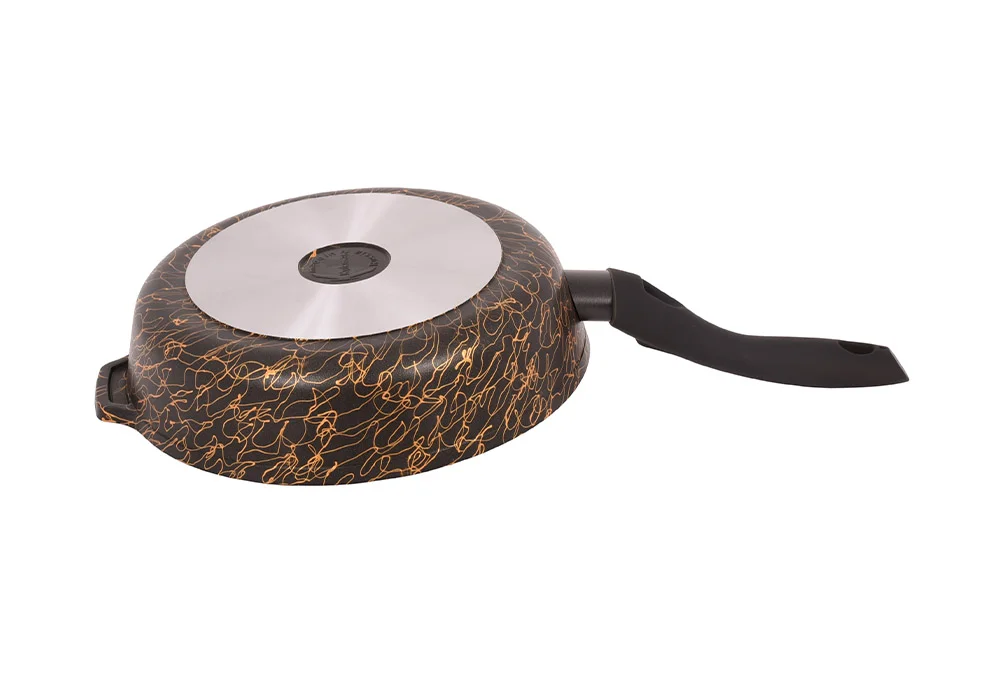 Сковорода Kukmara с антипригарным покрытием имеет проточенное дно, которое обеспечивает максимальное прилегание дна посуды к плите для более быстрого и равномерного нагрева.