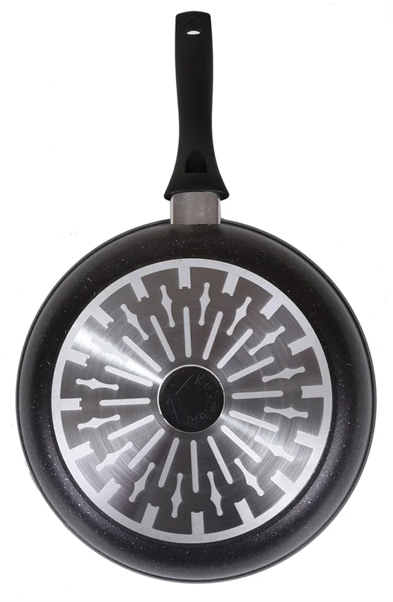 Сковорода Kukmara с антипригарным покрытием имеет ровное проточенное дно, которое обеспечивает максимальное прилегание дна посуды к плите для более быстрого и равномерного нагрева.
