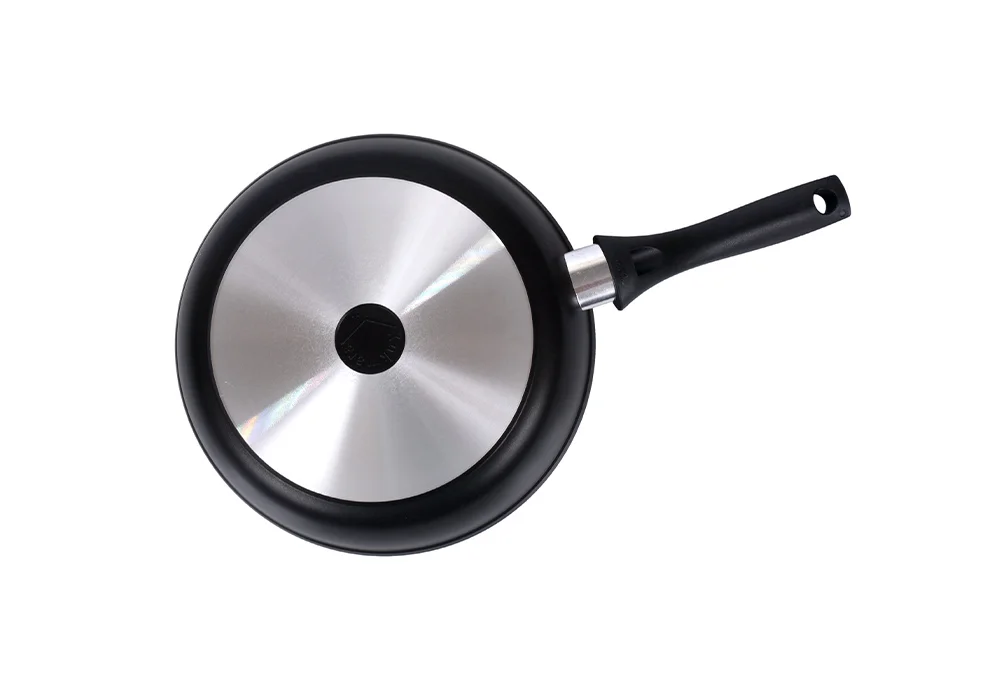 Сковорода Kukmara с антипригарным покрытием имеет проточенное дно, которое обеспечивает максимальное прилегание дна посуды к плите для более быстрого и равномерного нагрева.