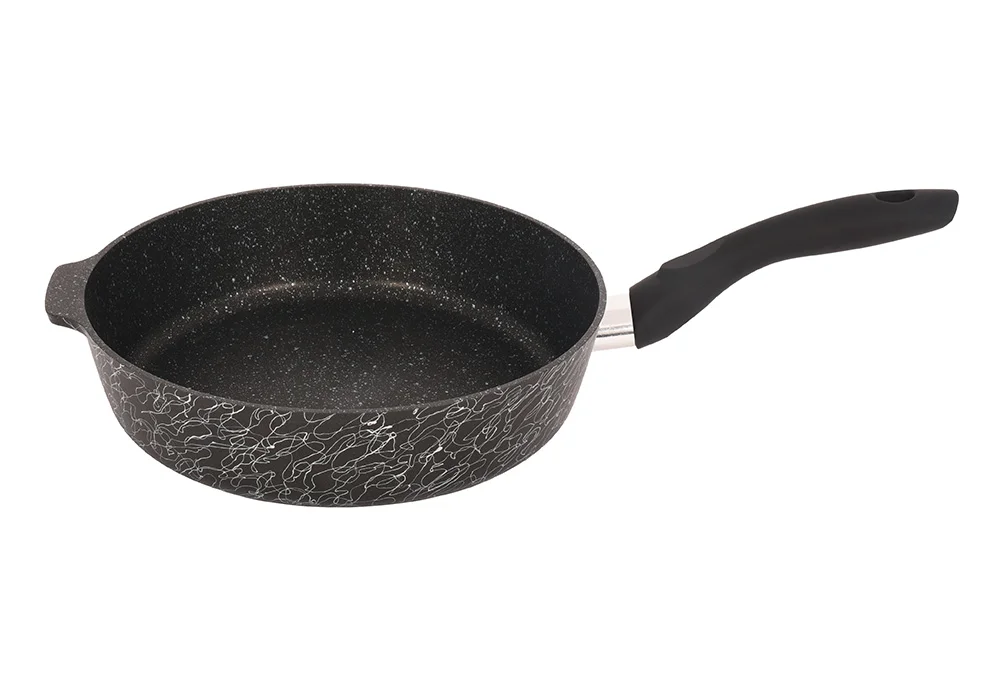 - значительная толщина стенок и дна исключает деформацию корпуса сковороды;