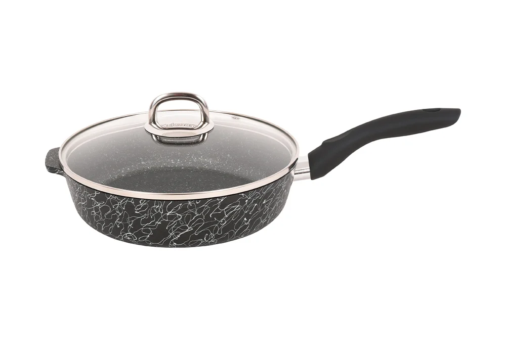 Сковорода Kukmara с антипригарным покрытием имеет проточенное дно, которое обеспечивает максимальное прилегание дна посуды к плите для более быстрого и равномерного нагрева.