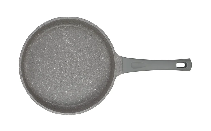 Антипригарное покрытие турецкого производства Kaplon Classic 2 plus имеет серый цвет с вкраплениями черного и белого. На лабораторных испытаниях оно выдерживало до 16 000 циклов приготовления (готовка, мойка, вытирание). Шесть слоев уникального антипригарного покрытия защищают от повреждений сколов, так, что можно пользоваться даже неострыми предметами при манипуляциях с посудой. Не требуется масло при готовке, а продукты не пригорают и не прилипают. С внешней стороны сковорода имеет декоративное термостойкое покрытие цвета «капучино». Дно посуды окрашено, и весьма деликатно воздействует на все виды плит, включая нежные стеклокерамические поверхности. У данной сковороды имеется несъемная бакелитовая ручка серого цвета с нескользящим покрытием soft-touch.