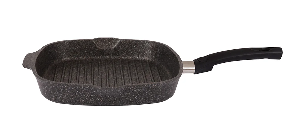 Восторг на кухне вызовет популярная сковорода-гриль, идеально подходящая для жарки мяса и овощей. Ее изюминка – это особое ребристое дно, благодаря которому блюда не только выглядят аппетитнее, но и получаются сочными и ароматными. Сковорода-гриль Kukmara из литого алюминия имеет отличные теплораспределительные и теплоаккумулирующие свойства.