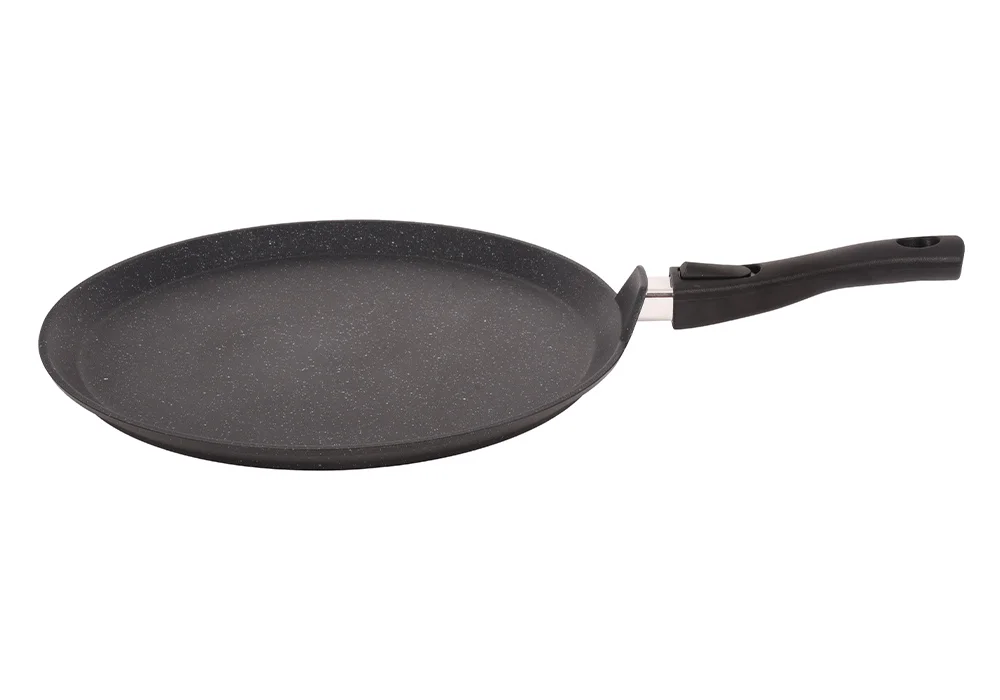 Незаменимая помощница на кухне - сковорода-лавашница, идеальная для приготовления лаваша, чуду и блинов. Ее низкие борта и утолщенное дно 6мм, а также покрытие с безупречными антипригарными качествами обеспечивают легкое и быстрое соскальзывание готового блюда со сковороды.