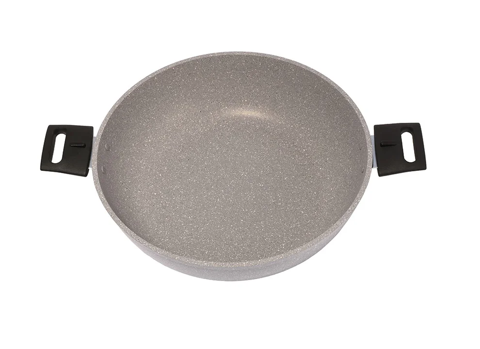 Мраморное, сверхпрочное, антипригарное покрытие с твердыми частицами натурального мрамора нового поколения на водной основе разработано специально для интенсивного использования на каждый день. Антипригарное покрытие надолго сохраняет первозданную привлекательность посуды, а превосходные антипригарные свойства будут радовать на протяжении очень долгого времени. Допускает использование только деревянных и силиконовых предметов. Покрытие абсолютно безопасно для здоровья, без PFOA. Покрытие не требует особенного ухода, легко моется как вручную, так и в посудомоечной машине.