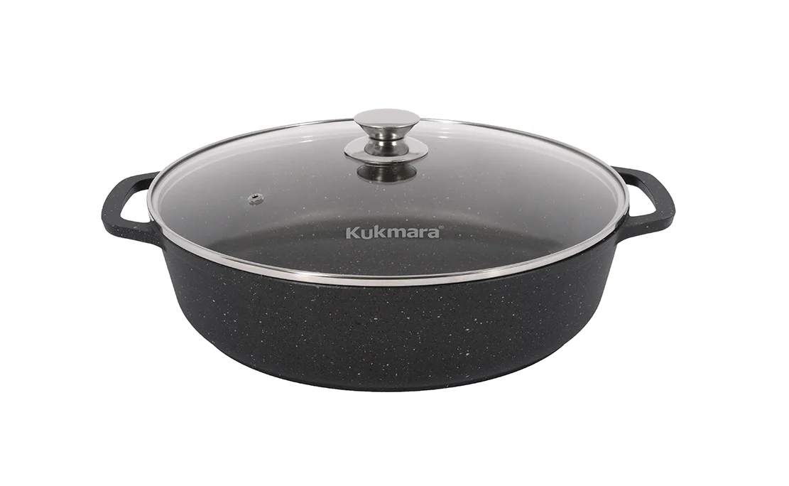 Сотейник создан для низкотемпературной обжарки с небольшим количеством масла. Чаще всего пассеруют овощи, чтобы их размягчить и раскрыть вкус и аромат. Сотейники Kukmara отличаются широким дном, что позволяет максимально увеличить площадь выпаривания жидкости. Помимо пассерования, сотейники отлично подходит для жарки и тушения и могут использоваться как обычные сковороды. Благодаря большим диаметрам сотейники Kukmara незаменимы в сезон сбора урожая: в них особенно удобно жарить грибы, делать баклажанную и кабачковую икру. Сотейник Kukmara из литого алюминия традиционной формы имеет отличные теплораспределительные и теплоаккумулирующие свойства, и блюда в ней получаются сочными и ароматными. Цельнолитые ручки позволяют использовать сотейник в духовом шкафу.
