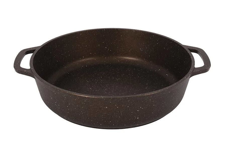 Мраморное, сверхпрочное, антипригарное покрытие с твердыми частицами натурального мрамора нового поколения на водной основе разработано специально для интенсивного использования на каждый день. Антипригарное покрытие надолго сохраняет первозданную привлекательность посуды, а превосходные антипригарные свойства будут радовать на протяжении очень долгого времени. Допускает использование только деревянных и силиконовых предметов. Покрытие абсолютно безопасно для здоровья, без PFOA. Покрытие не требует особенного ухода, легко моется как вручную, так и в посудомоечной машине.