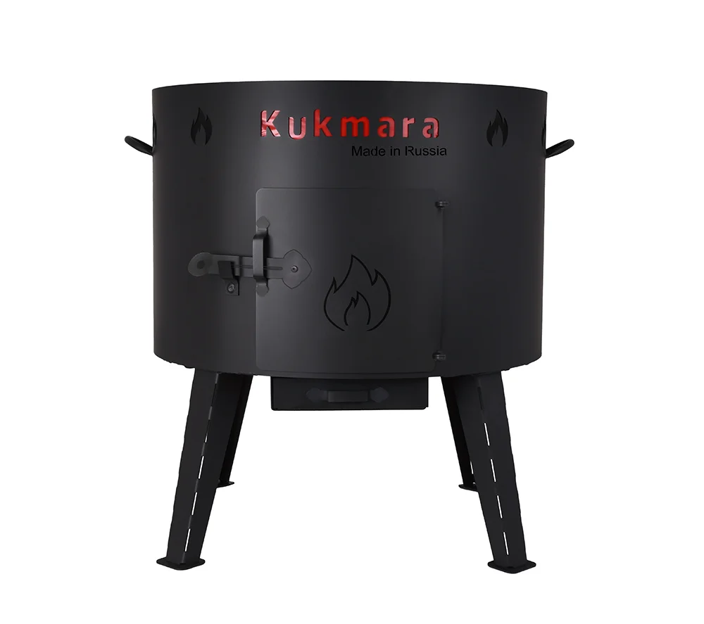 Жемчужиной коллекции по праву является учаг для казана, который предназначен для безопасного и быстрого приготовления пищи в казане, походном котле на природе, так как разжигание огня происходит внутри учага, а жар от огня и углей в большей степени окутывает весь казан или котел. Изделие представляет собой металлический цилиндр-корпус, в комплект которого входят съёмные ножки, дверца, кочерга и колосник. Оптимальная толщина стенок (2 мм) исключает возможность их деформации.