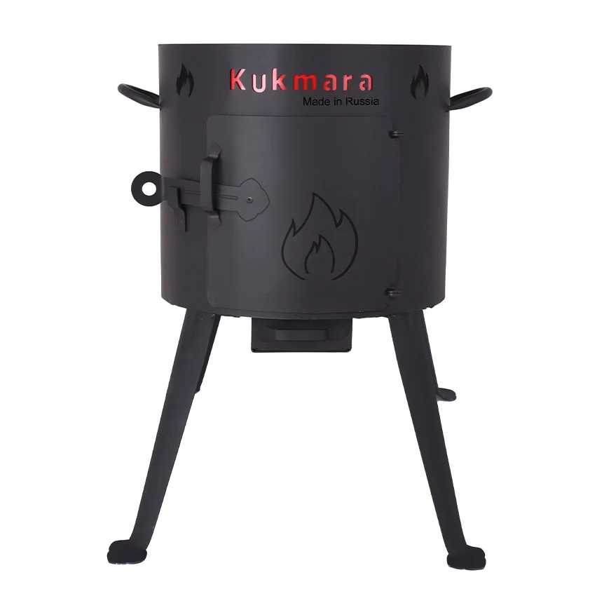 Жемчужиной коллекции по праву является учаг для казана, который предназначен для безопасного и быстрого приготовления пищи в казане, походном котле на природе, так как разжигание огня происходит внутри учага, а жар от огня и углей в большей степени окутывает весь казан или котел. Изделие представляет собой металлический цилиндр-корпус, в комплект которого входят съёмные ножки, дверца, кочерга и колосник. Оптимальная толщина стенок (2 мм) исключает возможность их деформации.