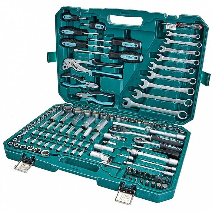 - рукоятка реверсивная (трещотка) 1/4" с функцией быстрого сброса – 155 мм, храповый механизм с 45 зубьями, рабочий угол 8° – 1 штука;