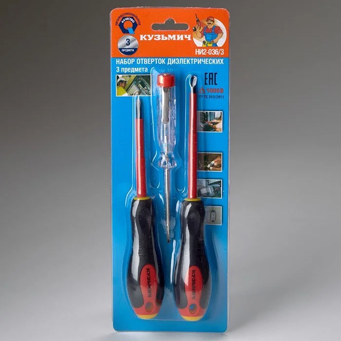 Набор изолированных отверток и тестера 3 предмета Кузьмич НИ2-036/3