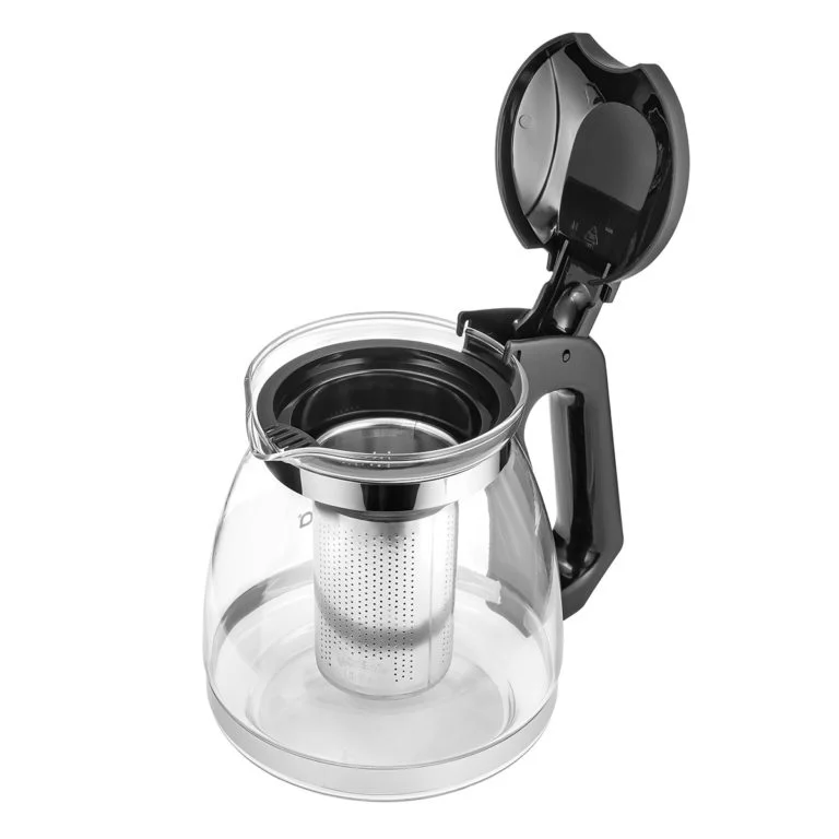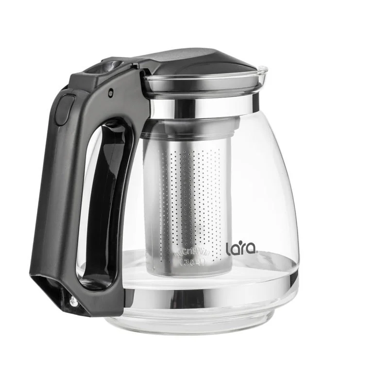 С этим вместительным заварочным чайником LARA можно смело организовывать чаепитие для большой и дружной компании. С ним Вы сможете приготовить 8-10 порций любимого ароматного чая любого сорта и вида. Уберите ситечко и можете приступать к экспериментам в приготовлении чая. Для изготовления этого чайника мы выбрали экологически чистые материалы, которые не вступаю в реакцию с продуктом. Для колбы мы использовали жаропрочное стекло, а для стильной крышки и ручки пищевой пластик чёрного цвета. Съемный жёсткий фильтр для заваривания из нержавеющей стали легко чистить и использовать вновь. Отделка хромированным кольцом из нержавеющей стали.