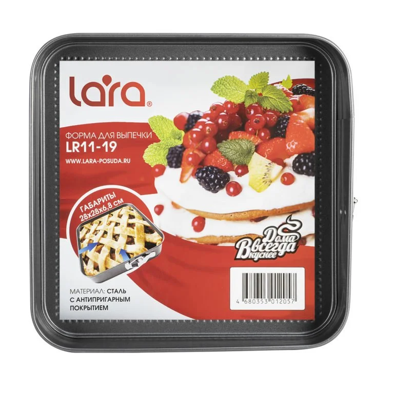 Квадратная форма для выпечки LARA – это прекрасный выбор для тех, кто любит и умеет готовить. Корпус выполнен из прочной и экологически чистой углеродистой стали с устойчивым к высоким и низким температурам антипригарным покрытием – идеальное сочетание свойств для чизкейков и тортов с кремом. Жидкое тесто не пригорит и не прилипнет к стенкам, а благодаря разборной конструкции с пружинным механизмом вы легко отсоедините дно и без труда достанете готовое изделие. Простой ручной уход с возможностью мыть в посудомоечной машине добавляют плюсов к выбору этого кухонного аксессуара.