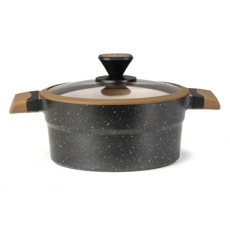 Отличная серия кастрюль LARA “МАРСЕЛЬ” – это практичность и комфорт, дизайн и актуальное цветовое решение в интерьере. Главной особенностью является прочное гранитное покрытие: внутреннее трёхслойное антипригарное BRONZE STONE, устойчивое к царапинам и внешнее жаропрочное двухслойное. Для серии выбрали экологичные материалы. Корпус изготовлен из литого алюминия с отличными теплопроводными характеристиками, ручки из бакелита с мягкими резиновыми вставками и покрытием Soft-Touch, крышка из жаропрочного стекла оснащена бакелитовой ручкой, съёмным силиконовым ободком и паровыпуском. Точечное индукционное дно подходит ко всем типам плит.
