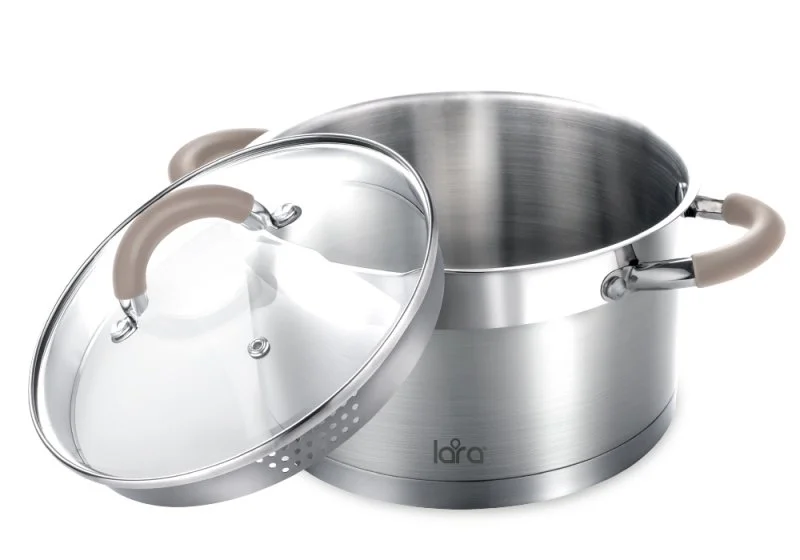Серия посуды "Berlin" имеет двусторонний носик для слива и крышку со сливными отверстиями, что существенно увеличивает Вашу продуктивность во время готовки.
