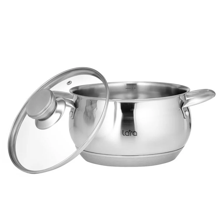 Готовка – это отдых! Красивейшая из кастрюль LARA “МАЙАМИ” дарит удовольствие рукам и глазам. Танцующая выпуклость корпуса, солидная матовая полоса и редкое 9-тиступенчатое дно. Развальцованный край избавляет от потеков при сливе. G-образный обод крышки плотно фиксирует ее на корпусе. Стальные дугообразные ручки закреплены на ручке с помощью заклепок. Стекло крышки – жаропрочное, способное выдерживать очень высокую температуру. На внутренних стенках размещена мерная шкала для соблюдения пропорций. Толстые стенки и многослойное дно гарантируют, что результат превзойдет самые смелые ожидания.