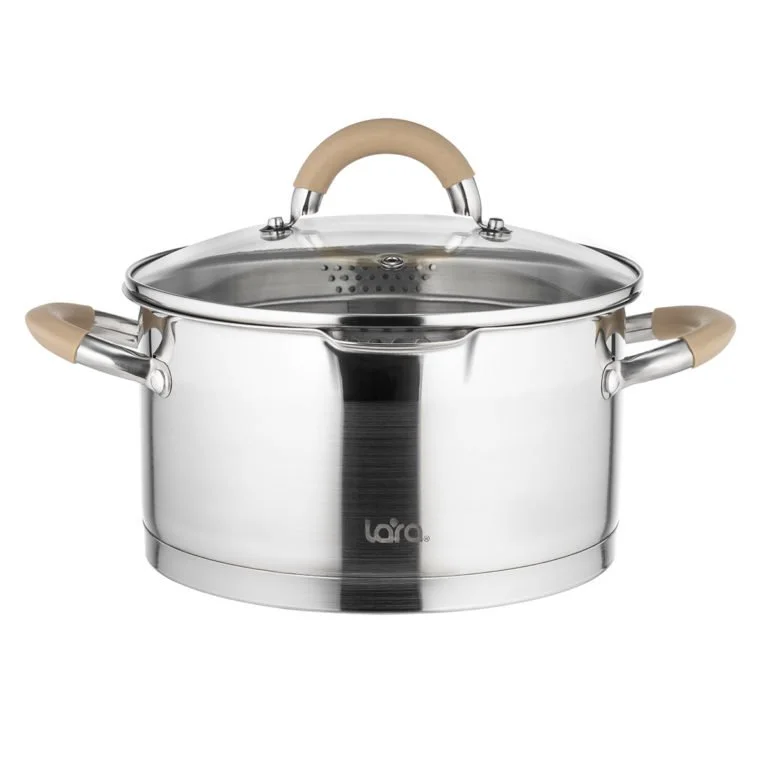 Кастрюли LARA серии “BERLIN” перекликаются с современной архитектурой одного из главных центров Европы – Берлином. Лаконичный дизайн, строгие формы, технологичные материалы и ненавязчивые акценты органично сочетаются как в этом городе, так и в данной серии посуды. В качестве материала для серии “BERLIN” были подобраны высококачественная нержавеющая сталь AISI201, термостойкое стекло и ненагревающийся силикон бежевого цвета, который используется в отделке ручек. Особенностью серии является уникальная конструкция крышки с отверстиями Ø3 Ø6 мм, для быстрого слива воды. Стальное индукционное капсулированное дно подходит для всех типов плит.