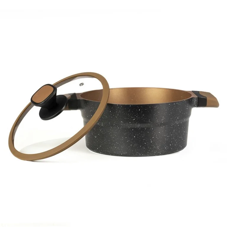 Отличная серия кастрюль LARA “МАРСЕЛЬ” – это практичность и комфорт, дизайн и актуальное цветовое решение в интерьере. Главной особенностью является прочное гранитное покрытие: внутреннее трёхслойное антипригарное BRONZE STONE, устойчивое к царапинам и внешнее жаропрочное двухслойное. Для серии выбрали экологичные материалы. Корпус изготовлен из литого алюминия с отличными теплопроводными характеристиками, ручки из бакелита с мягкими резиновыми вставками и покрытием Soft-Touch, крышка из жаропрочного стекла оснащена бакелитовой ручкой, съёмным силиконовым ободком и паровыпуском. Точечное индукционное дно подходит ко всем типам плит.