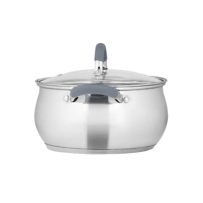 “Горшочек, вари!” – так и хочется воскликнуть, глядя на эту милую кастрюлю из серии LARA “BELL” . Уютная колоколообразная форма создана для домашней кухни. Ручки обернуты термоупорным силиконом, чтобы брать горячую кастрюлю было безопасно. Стенки зеркально отполированы с 2 сторон. Нагрев ручки снижает также тонкий мостик между ней и местом крепления. В кастрюлю вплавлено 5-слойное дно с алюминиевым слоем по всей площади: равномерный разогрев сохраняет вкус продуктов и исключает пригорание. Кастрюля, крышка, а также силиконовые накладки – при упаковке заботливо заворачиваются в защитную пленку для защиты от механических повреждений.