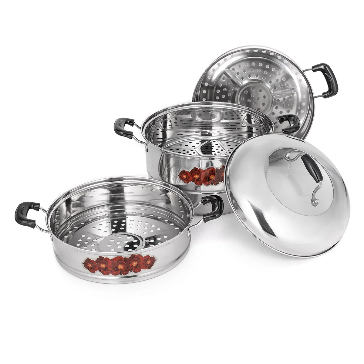 Вместительная мантоварка LARA – это оптимальный вариант для приготовления разнообразных блюд на пару. Сохранит максимум полезных свойств продукта и идеально подойдёт для здорового питания. Современный дизайн с цветочным рисунком и модульная конструкция придутся по душе любой хозяйке. Мантоварка изготовлена из высококачественной нержавеющей стали марки ASIS201 с зеркальной полировкой внутри и снаружи. Оснащена бакелитовыми ненагревающимися ручками на заклёпках, крышкой со стеклянной вставкой для контроля приготовления и съёмными модулями с решетчатым дном. 5-слойное индукционное капсулированное дно подходит для всех типов кухонных плит.