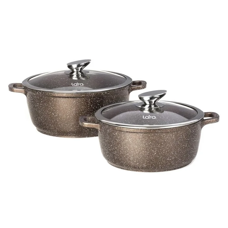 Мрамор – это идеальный акцент в дизайне, а кастрюли LARA серии “Choco” – это идеальная посуда высокого качества для ежедневного приготовления блюд. Кастрюли этой серии позволят получить не только новый опыт во взаимодействии с посудой, но и превосходный результат взаимодействия с ней. Серия выполнена из литого алюминия с прекрасными теплопроводными свойствами. Прочное антипригарное покрытие с минеральными частицами, надёжно защищает дно и стенки от повреждений. Крышка с паровыпуском изготовлена из жаропрочного стекла, защитным кольцом и удобной стальной ручкой G-формы. Капсулированное дно подходит для всех типов поверхностей.