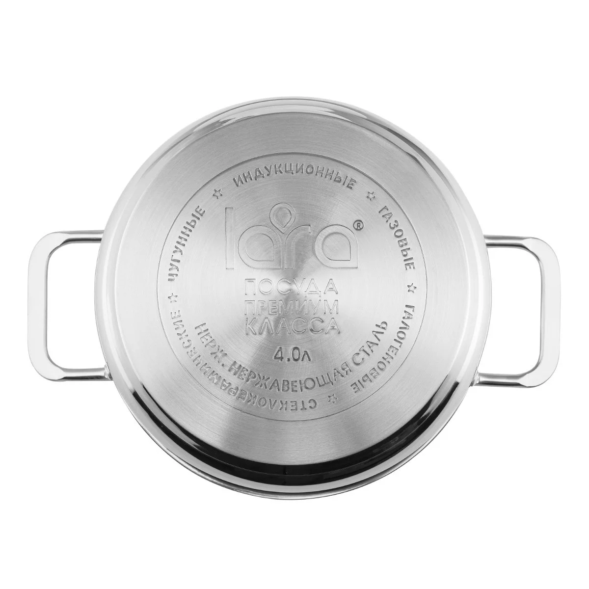 Набор кастрюль LARA серии “STANDART” станет верным помощником на Вашей кухне. Гармоничный дизайн, зеркальная полировка корпуса с тремя матовыми полосами придают изделиям законченный внешний вид и делают их стильными элементами интерьера. Внутренняя мерная шкала для соблюдения рецептуры. Кастрюли произведены из высокоуглеродистой нержавеющей стали марки AISI201. Крышка изготовлена из жаропрочного стекла с паровыпуском, стальной ненагревающейся ручкой и ободом G-формы плотно прилегающим к стенкам. Полые ненагревающиеся ручки на прочных заклёпках. Толстое индукционное капсулированное дно подойдёт для всех типов плит. Можно мыть в посудомойке.