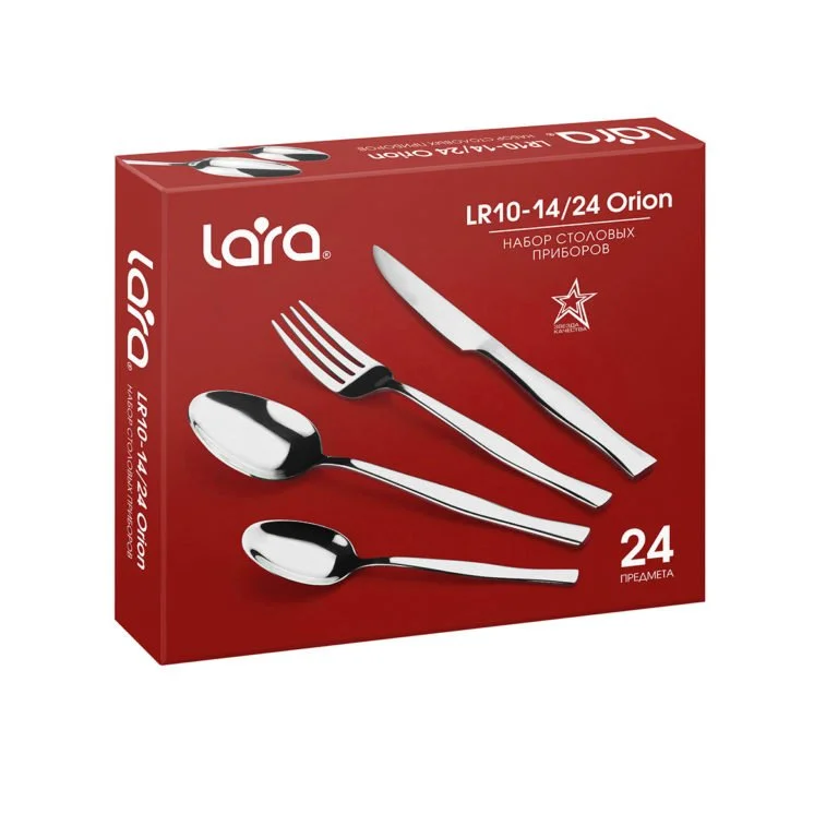 Изящность. Элегантность. Строгость. Стильные изгибы столовых приборов ORION для тех, кто не любит вычурность и хочет оставаться оригинальным. Поэтому и лезвие столового ножа в этом наборе с острым кончиком и особой неординарной формы. Кстати, такой нож идеально подойдет для стейков! Столовые приборы LARA изготовлены из стали с 18-процентным содержанием хрома и имеют зеркальную полировку класса “А”. Особое внимание уделено остроте зубьев вилки. Труднодоступные места между зубьями, в которых могут скапливаться остатки пищи, отполированы вручную так, чтобы сделать поверхность ровной и гладкой и повысить гигиеничность изделий. Глубина столовой ложки не менее 7 мм, и это обеспечивает оптимальную вместительность.