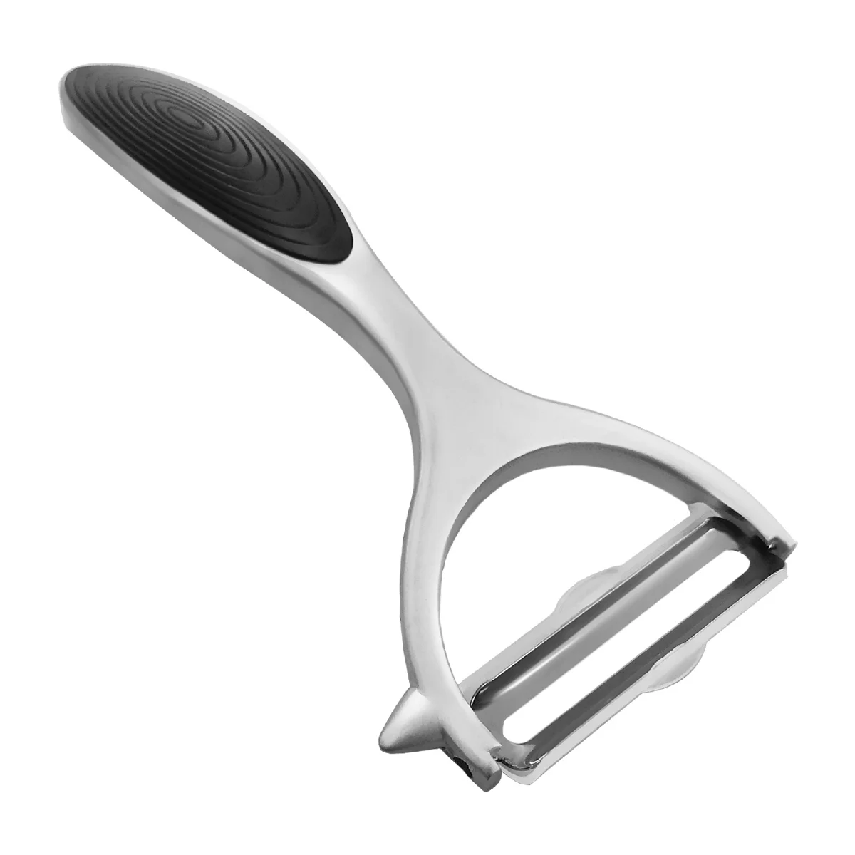 Овощечистка LARA LR07-46 имеет прорезиненную ручку. Рабочие части изготовлены из нержавеющей стали.