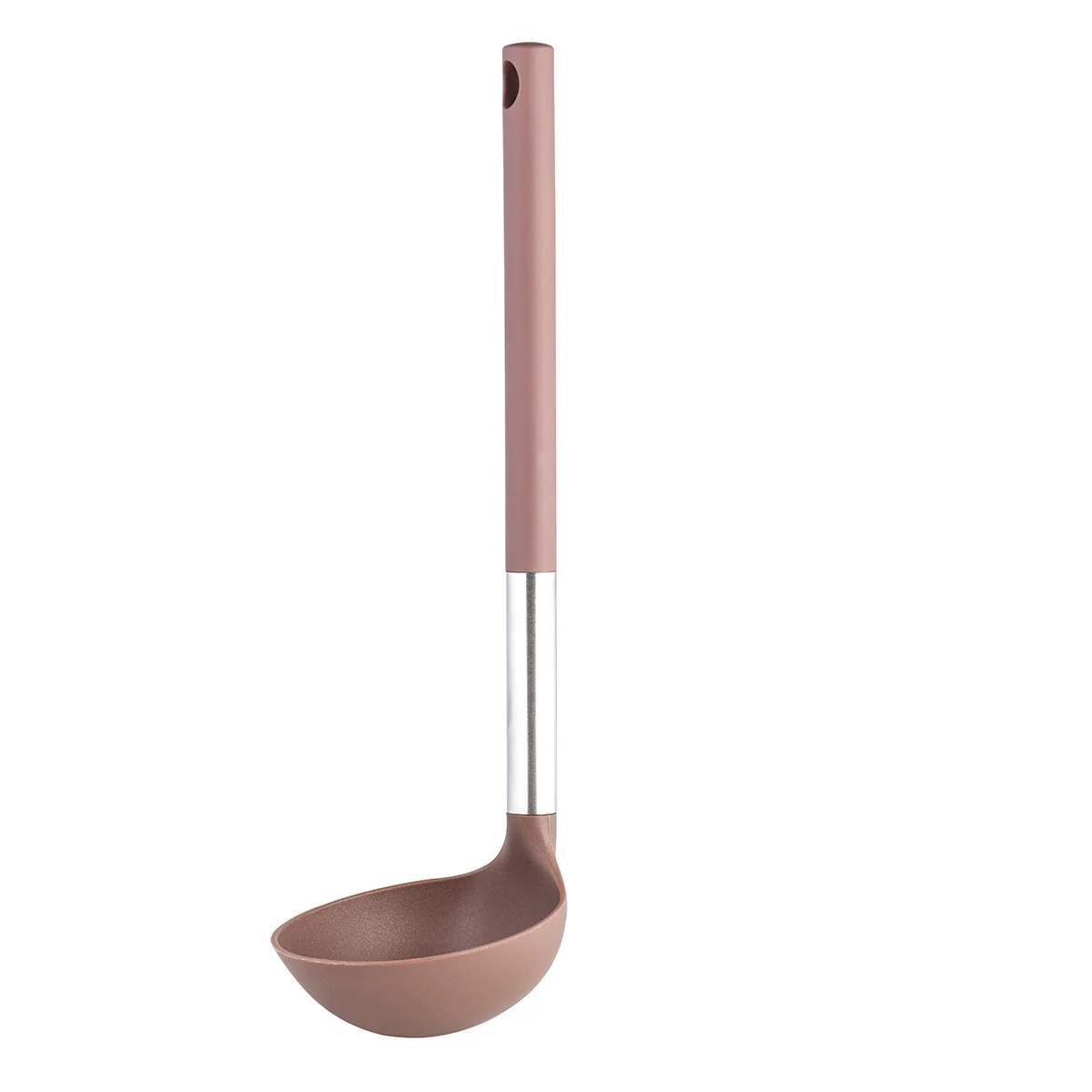 Кухонные аксессуары давно стали не только инструментом, но и предметом интерьера. Серия выполнена в шоколадно-кофейном цвете. Рукоятка с нежным TPR-покрытием. Гигиеничность используемого нейлона соответствует американским стандартам FDA. Переходной патрубок из нержавеющей стали 18/0. Все части изделия тщательно подогнаны и закреплены. Имеется отверстие для подвешивания.