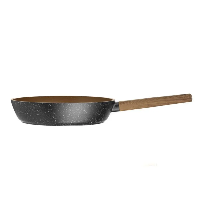 Отличная линейка сковородок LARA “МАРСЕЛЬ” – это превосходный дизайн, яркое цветовое решение для интерьера, практичность и комфорт использования. Особенностью серии является прочное гранитное покрытие: внутреннее трёхслойное антипригарное BRONZE STONE, устойчивое к царапинам и внешнее жаропрочное двухслойное. Для производства выбрали экологичные материалы. Корпус с прямыми стенками шириной 4,5 мм изготовлен из литого алюминия с отличными теплопроводными характеристиками. Удобная ручка с широким хватом из бакелита с покрытием Soft-Touch под дерево. Индукционное точечное дно толщиной 6 мм подходит для всех типов плит. Петля для подвешивания.