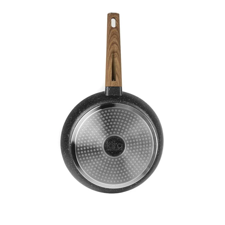 Отличная линейка сковородок LARA “МАРСЕЛЬ” – это превосходный дизайн, яркое цветовое решение для интерьера, практичность и комфорт использования. Особенностью серии является прочное гранитное покрытие: внутреннее трёхслойное антипригарное BRONZE STONE, устойчивое к царапинам и внешнее жаропрочное двухслойное. Для производства выбрали экологичные материалы. Корпус с прямыми стенками шириной 4,5 мм изготовлен из литого алюминия с отличными теплопроводными характеристиками. Удобная ручка с широким хватом из бакелита с покрытием Soft-Touch под дерево. Индукционное точечное дно толщиной 6 мм подходит для всех типов плит. Петля для подвешивания.