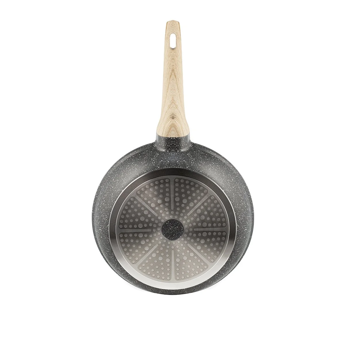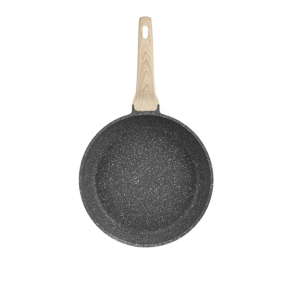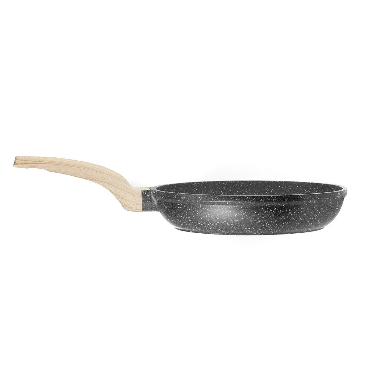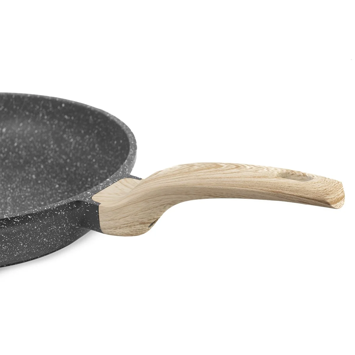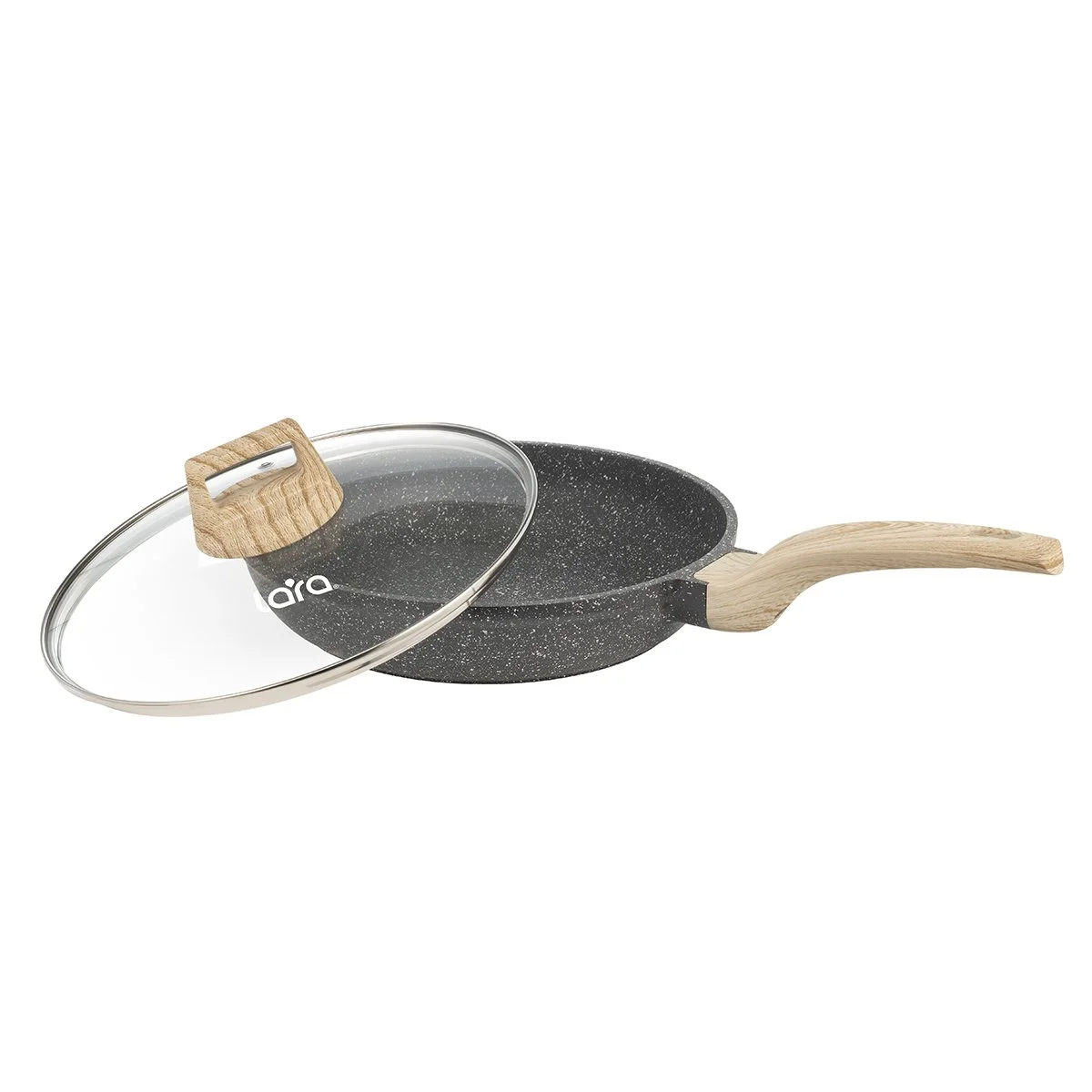 Линейка сковородок LARA серии “ROME” – это посуда великолепного качества, которая станет отличным подспорьем в приготовлении блюд изысканной кухни. Профессиональное антипригарное пятислойное гранитное покрытие ILAG GRANISTONE способствует интенсивной реализации самых смелых фантазий. При производстве использованы экологичные материалы. Корпус с толстыми стенкам выполнен из литого алюминия с отличными теплопроводными свойствами. Ручка из огнеупорного бакелита с прорезиненым покрытием Soft-Touch и отделкой под дерево. Крышка из жаропрочного стекла с паровыпуском и ободом G-формы. Толстое индукционное точечное дно подходит для всех типов плит.