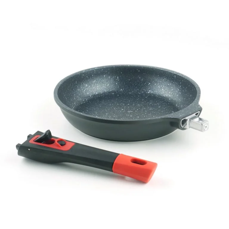 Современная линейка сковородок LARA серии “MONACO NOIR” – это практичность и комфорт, дизайн и актуальное цветовое решение для интерьера. Ключевой особенностью серии является устойчивое к царапинам прочное внутреннее трёхслойное антипригарное покрытие GRANIT с мраморной крошкой и внешнее жаропрочное покрытие. Для производства были подобраны только экологически чистые материалы. Корпус выполнен из литого алюминия с отличными теплопроводными свойствами. Удобная съёмная магнитная ручка из бакелита с мягким прорезиненым покрытием. Точечное индукционное дно подходит ко всем типам плит. Возможно использование в духовке. Петля для подвешивания.