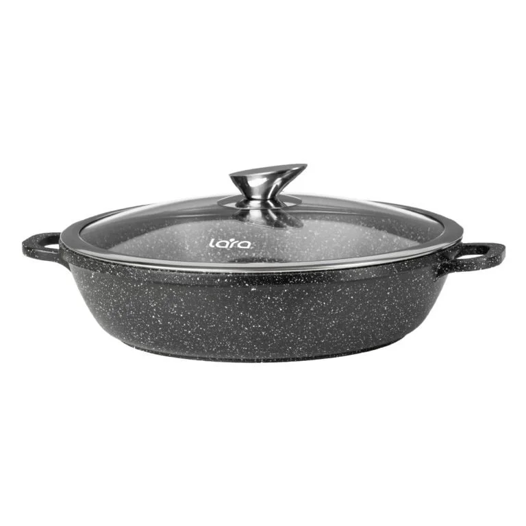 Мрамор – это идеальный акцент в дизайне, а сотейники LARA серии “RIO” – это идеальная посуда высокого качества для ежедневного приготовления блюд. Линейка сотейников дополняет и расширяет функционал кастрюль этой серии и позволяет получить новый опыт во взаимодействии с посудой. Сотейник выполнен из литого алюминия с отличными теплопроводными свойствами. Прочное двухслойное антипригарное покрытие с минеральными частицами, надёжно защищает дно и стенки от повреждений. Крышка с паровыпуском изготовлена из жаропрочного стекла, защитным кольцом и удобной стальной ручкой G-формы. Капсулированное дно подходит для всех типов поверхностей.
