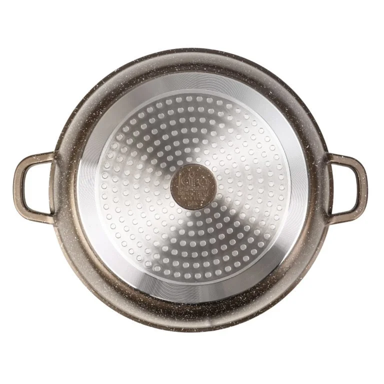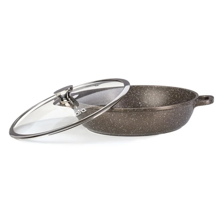 Мрамор – это идеальный акцент в дизайне, а сотейники LARA серии “CHOCO” – это идеальная посуда высокого качества для ежедневного приготовления блюд. Линейка сотейников дополняет и расширяет функционал кастрюль этой серии и позволяет получить новый опыт во взаимодействии с посудой. Сотейник выполнен из литого алюминия с отличными теплопроводными свойствами. Прочное двухслойное антипригарное покрытие с минеральными частицами, надёжно защищает дно и стенки от повреждений. Крышка с паровыпуском изготовлена из жаропрочного стекла, защитным кольцом и удобной стальной ручкой G-формы. Капсулированное дно подходит для всех типов поверхностей.