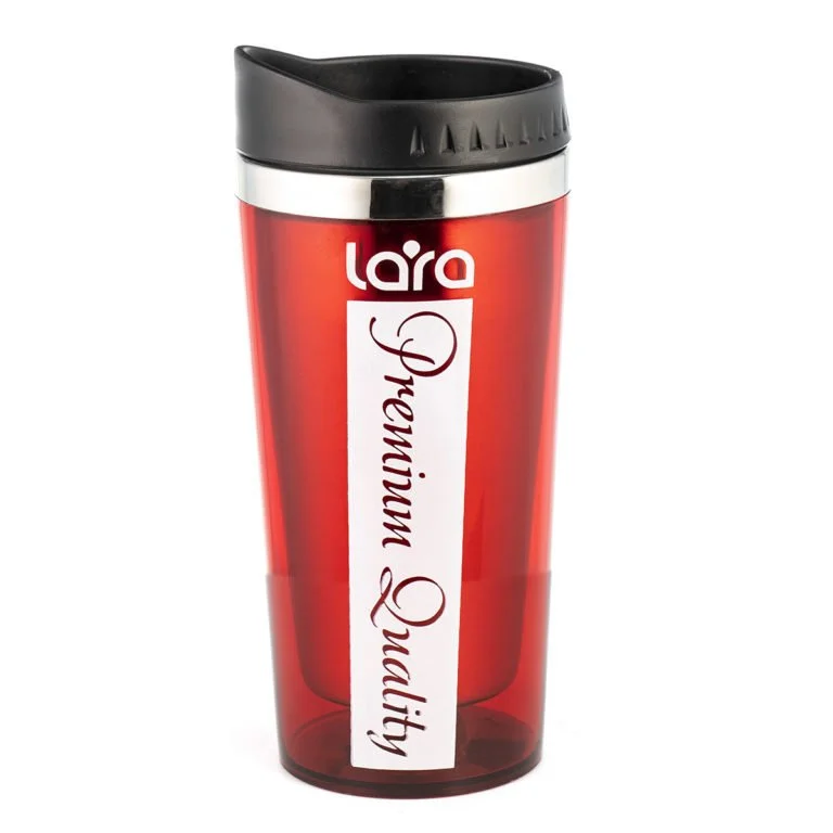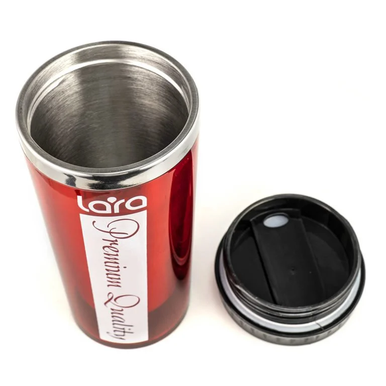 Термокружка “LARA” LR04-34 согреет в дороге, или на диване под пледом: благодаря двойным стенкам тепло удерживается достаточно долго: 1-2 часа. Крышка имеет более высокий бортик со стороны отверстия для питья: так пить значительно удобнее. Кружка очень вместительна: 500 мл. Колба из нержавеющей стали легко моется, а противоскользящая накладка на дне не даст кружке соскользнуть. По окружности крышки нанесены риски для облегчения откручивания. Подходит и для холодных напитков.