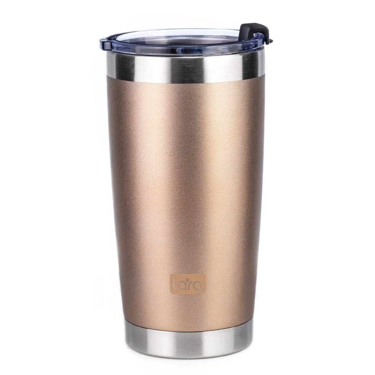 Стильная термокружка LARA LR04-25 – полезный аксессуар для любителей горячих напитков. Объем (560 мл) заменяет две-три чашки чая или кофе. Благодаря двойным стенкам напиток остается горячим гораздо дольше, чем в обычном стакане. Внутренняя колба изготовлена из пищевой нержавеющей стали AISI 304: это безопасный и удобный в уходе материал. Кружка закрывается прозрачной крышкой с клапаном.