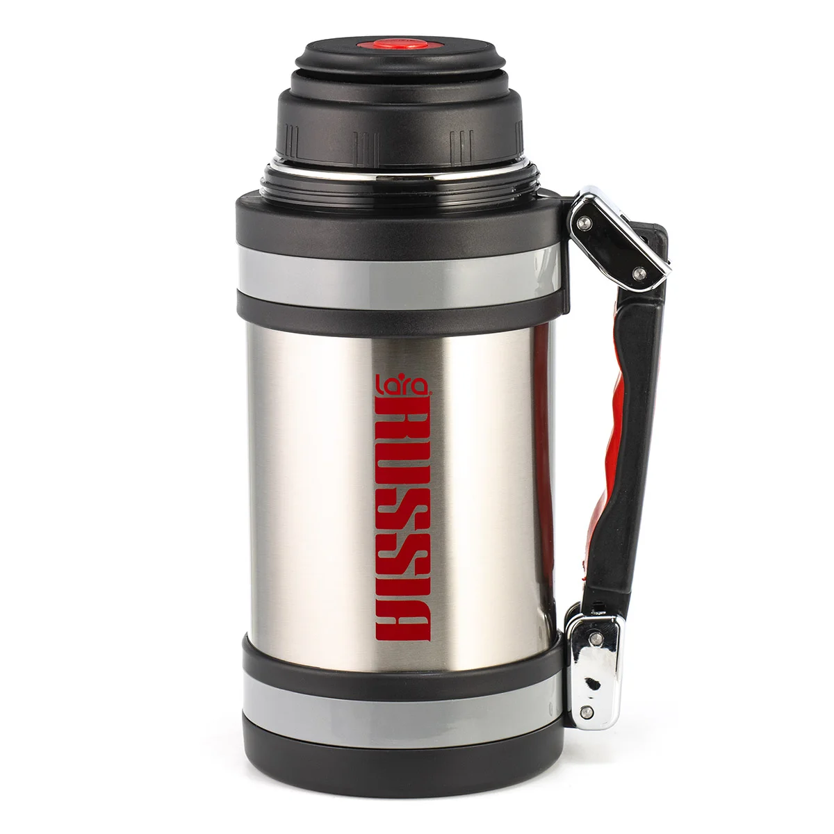 Термос из нержавеющей стали для путешествий LR04-04 отличается широким горлышком, поэтому в нем можно хранить не только напитки, но и супы. Ручка имеет шарнир, благодаря которому плотно прижимается к корпусу и не занимает лишнего места. Ручка не выскальзывает из рук благодаря резиновым вставкам. Термос оснащен ремешком для удобного ношения. В комплекте есть дополнительный пластиковый стакан, находящийся в крышке, что увеличивает теплоизоляцию.