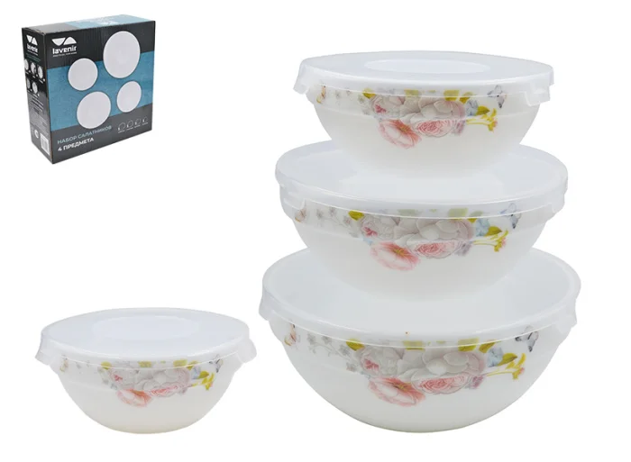 Набор салатников Lavenir с пластиковыми крышками 4пр SW-4T 7055 «Августа» включает в себя: