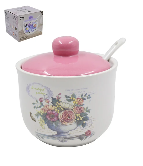 Сахарница Lavenir "Beautiful garden" 330 мл, 9,5 см HC200-K48 с ложкой доломит