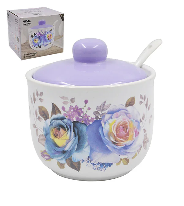 Сахарница Lavenir "Сиреневый букет" 330 мл, 9,5 см HC200-P85 с ложкой доломит