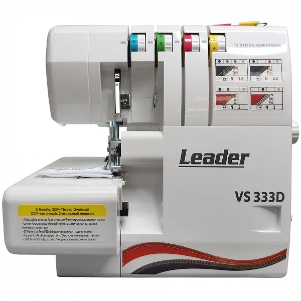4/3/2-ниточный оверлок Leader VS 333D выполняет 12 видов оверлочных швов.