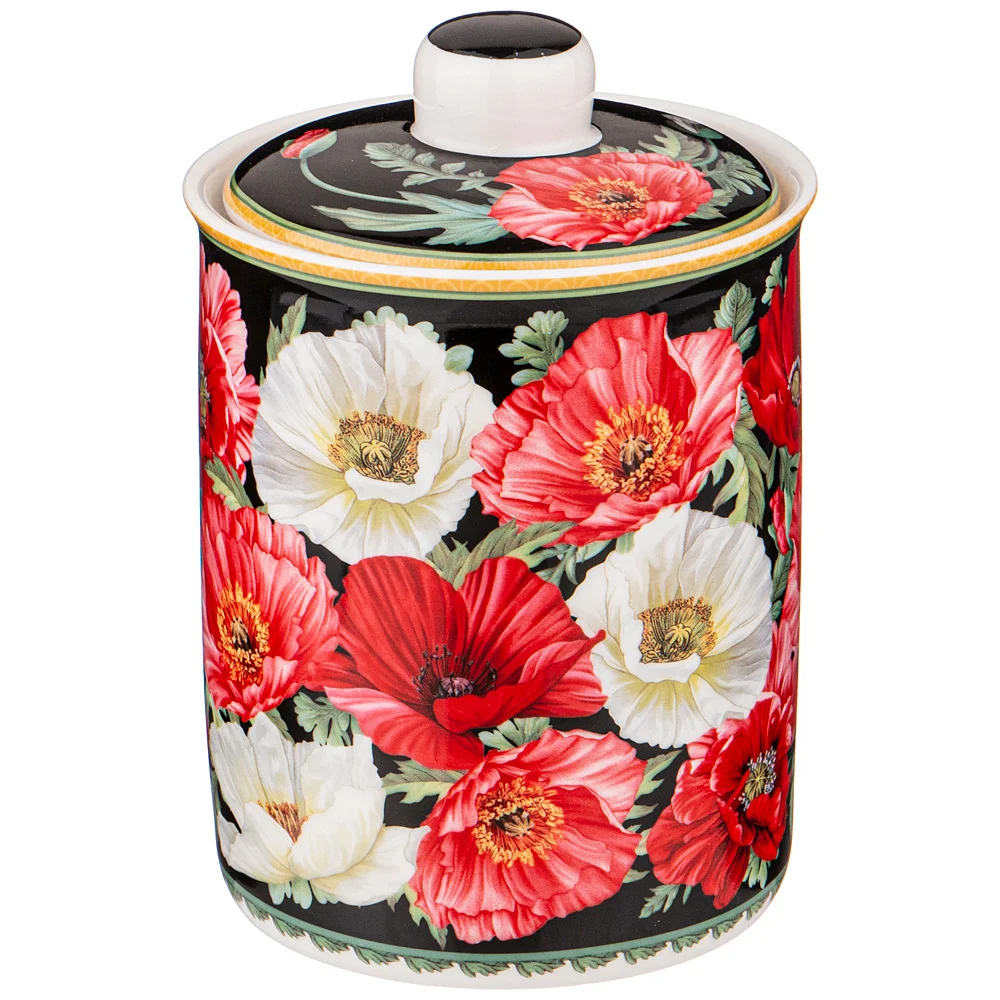 TM Lefard коллекция "Маки" - это яркое и любимое цветущее маковое поле. Банка из тонкостенного фарфора. Посуда прошла сертификацию. Безопасна для контакта с пищевыми продуктами. Удобная форма. Отличный подарок. Разрешено использование в микроволновой печи, можно мыть в посудомоечной машине мягкими моющими средствами.