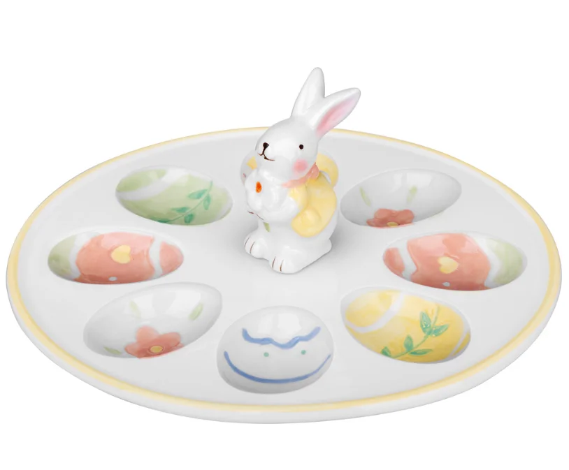 Пасхальная коллекция — это гармония традиций и современного дизайна, созданная, чтобы наполнить ваш дом атмосферой весеннего обновления и семейного тепла. Нежность в каждой детали Мягкие переходы от светло-желтого к нежно-зеленому, акценты розового — палитра коллекции вдохновлена первыми весенними ростками и солнечным светом. Фигурки милых кроликов с изящными бантами, элегантные подставки для яиц и изысканные сервировочные блюда превратят ваш праздничный стол в произведение искусства.